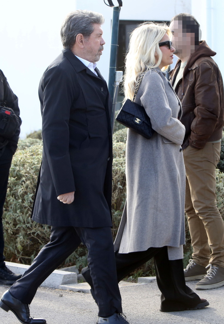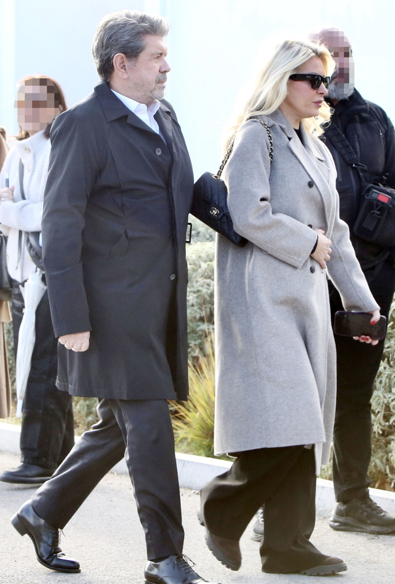 Η Ελένη Μενεγάκη και ο Γιάννης Λάτσιος απαθανατίστηκαν από τα τηλεοπτικά συνεργεία κατά την είσοδό τους στο Αποτεφρωτήριο Ριτσώνας.
