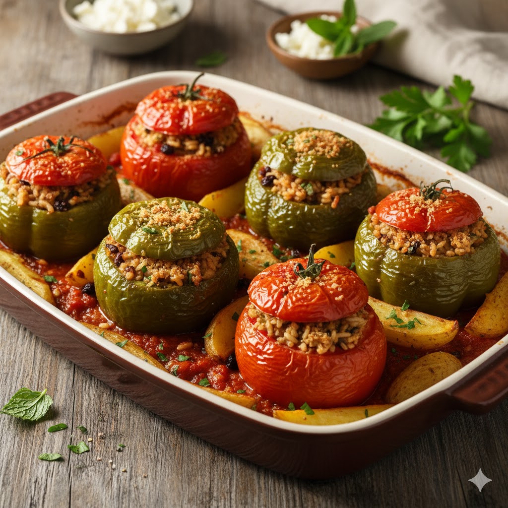 Αν το σπίτι δεν μυρίσει δυόσμο και ψημένη πιπεριά, δεν είναι Κυριακή. Τα γεμιστά δεν είναι απλώς ένα φαγητό· είναι ιεροτελεστία. Το μυστικό δεν κρύβεται μόνο στα υλικά, αλλά στην υπομονή και στο «πάντρεμα» των λαχανικών μέσα στο ταψί. Σήμερα φτιάχνουμε την ορφανή εκδοχή (χωρίς κιμά), που είναι όμως τόσο πλούσια σε γεύση που δεν θα λείψει σε κανέναν το κρέας!